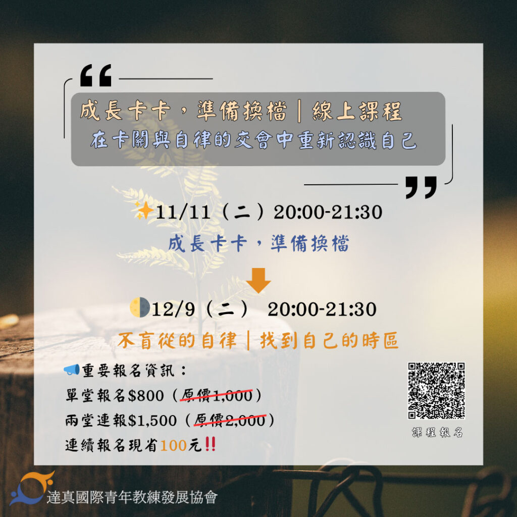 11/11(二)20:00-21:30 成長卡卡,準備換檔